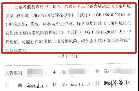 抽樣檢測發(fā)現(xiàn)周邊地塊土壤中銅、鋅含量超過《土壤環(huán)境質(zhì)量農(nóng)用地土壤污染風(fēng)險管控標(biāo)準(zhǔn)(試行)》篩選值,環(huán)境受到污染▼