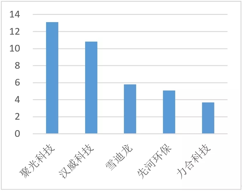 上半年大氣領(lǐng)域環(huán)保營(yíng)收TOP5(單位:億元)