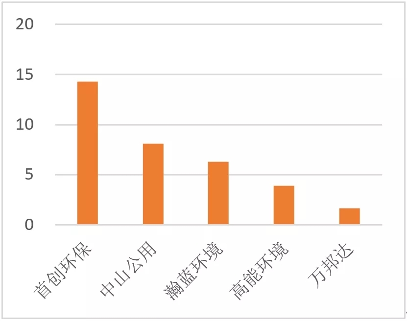 上半年環(huán)境修復(fù)領(lǐng)域凈利潤(rùn)TOP5(單位:億元)