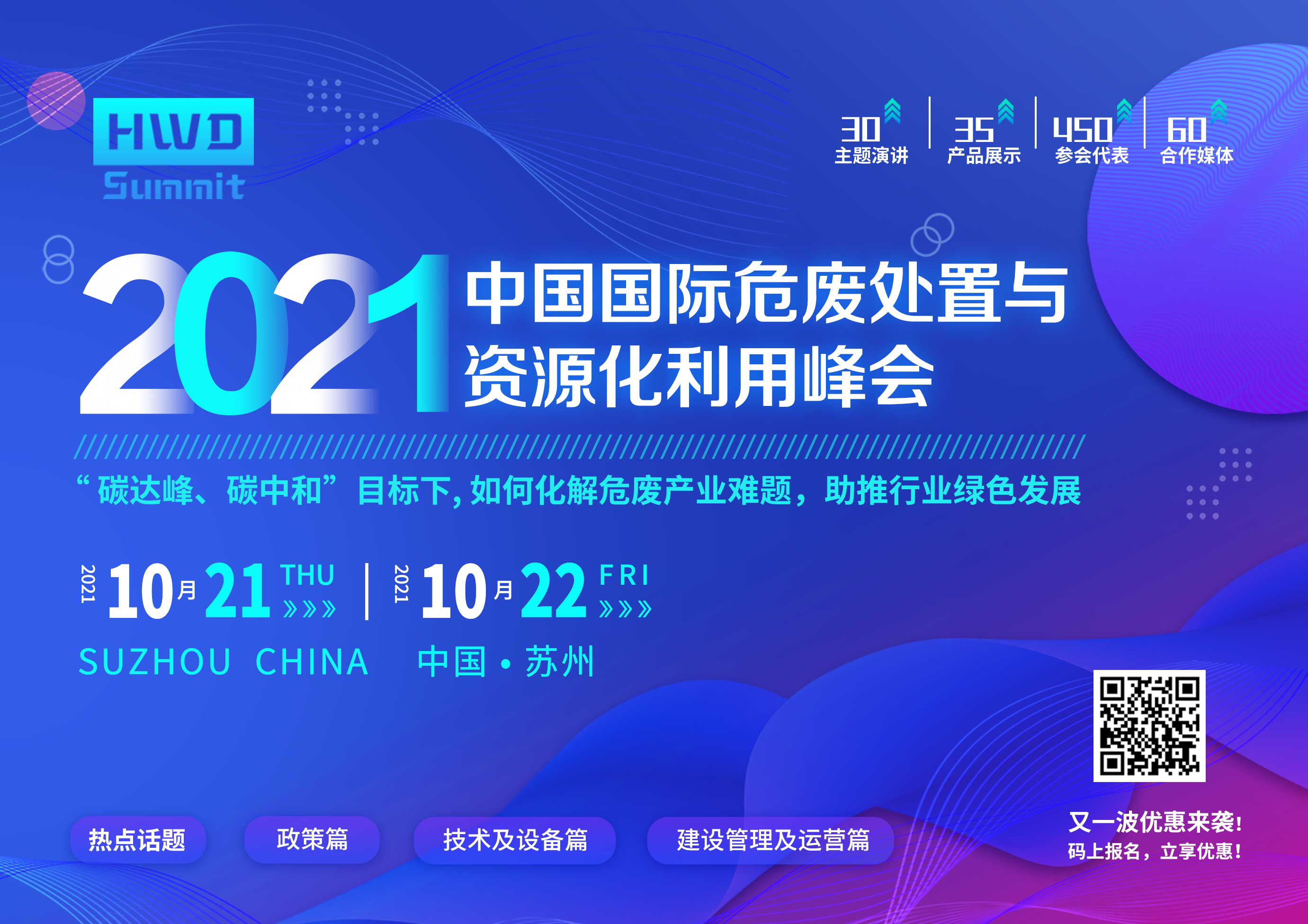 屆時(shí),2021中國(guó)國(guó)際危廢處置與資源化利用峰會(huì)將于10月21-22日于蘇州召開(kāi),峰會(huì)預(yù)計(jì)將有450至500名參會(huì)人員到現(xiàn)場(chǎng)交流,20位專家,100家處置單位,50家產(chǎn)廢企業(yè),期待與您齊聚蘇州,共探產(chǎn)業(yè)創(chuàng)新發(fā)展之路,歡迎各界環(huán)保代表垂詢!