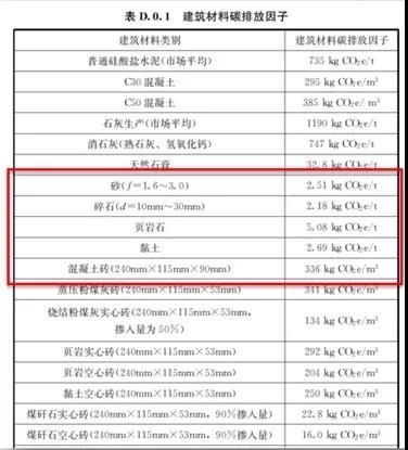 在“雙碳”目標下,來看建筑垃圾處理?!督ㄖ寂欧庞嬎銟藴省?GB/T 52366-2019)6.2.5條中規(guī)定,建材生產(chǎn)時,當使用低價值廢料作為原料時,可忽略其上游過程的碳過程。當使用其他再生原料時,應按其所替代的初生原料的碳排放的50%計算;建筑建造和拆除階段產(chǎn)生的可再生建筑廢料,可按其可替代的初生原料的碳排放的50%計算,并應從建筑碳排放中扣除。下表顯示,砂、碎石等骨料的碳排放因子比混凝土磚的碳排放小了2個數(shù)量級。