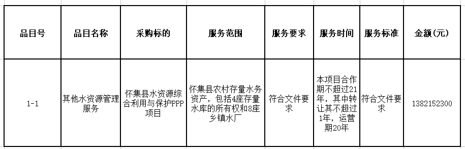 合同包1(懷集縣水資源綜合利用與保護(hù) PPP 項(xiàng)目):