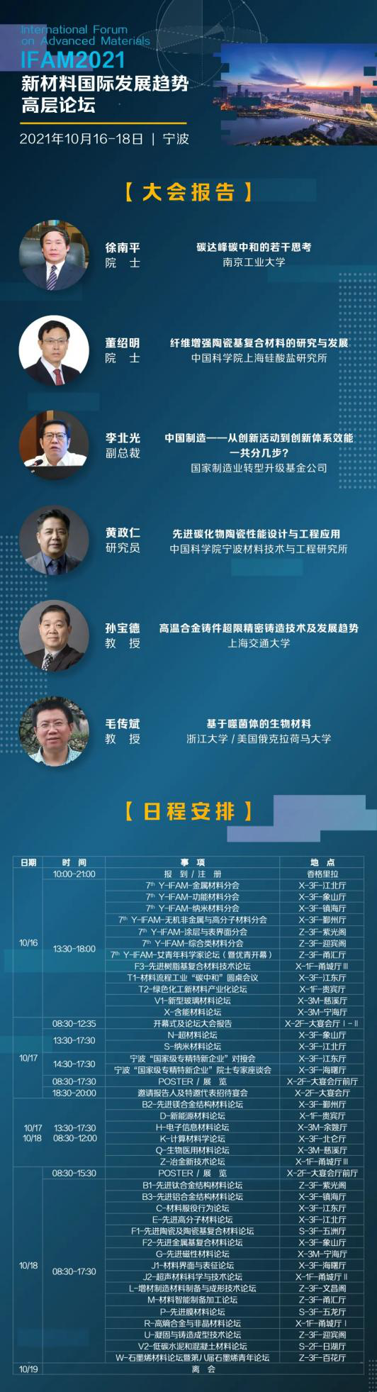 由中國(guó)科學(xué)院寧波材料技術(shù)與工程研究所、中國(guó)科學(xué)院上海硅酸鹽研究所等單位承辦的“2021 新材料國(guó)際發(fā)展趨勢(shì)高層論壇(IFAM2021)”將于2021年10月16日-10月18日在寧波香格里拉大酒店舉行,論壇已邀請(qǐng)了 400 余位國(guó)內(nèi)外材料科學(xué)家在超材料、材料界面與表征、超聲材料、計(jì)算材料學(xué)、高熵合金與非晶材料、生物醫(yī)用材料、輕質(zhì)金屬結(jié)構(gòu)材料、增材制造材料制備與成形技術(shù)、材料服役行為等 27 個(gè)分會(huì)作精彩報(bào)告。會(huì)議聯(lián)合國(guó)家自然科學(xué)基金委員會(huì)、中國(guó)工程院教育委員會(huì)組織的“IFAM第七屆優(yōu)秀青年科學(xué)家論壇”,吸引了 100 余位優(yōu)秀青年學(xué)者在金屬材料、能源材料、納米材料、功能材料、無(wú)機(jī)非金屬材料及催化材料等領(lǐng)域作報(bào)告。本次會(huì)議還設(shè)立了海洋新材料與腐蝕防護(hù)論壇、材料流程工業(yè)“碳中和”圓桌會(huì)議、綠色化工新材料產(chǎn)業(yè)化論壇,共享新材料發(fā)展成果。熱忱歡迎各位專家、學(xué)者和產(chǎn)業(yè)單位人士出席!