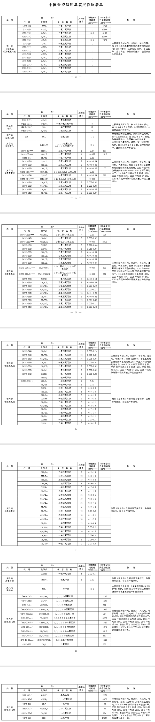 附件:中國(guó)受控消耗臭氧層物質(zhì)清單