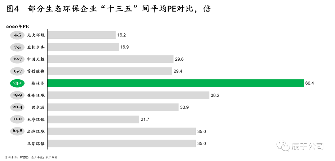定好估值中樞。不同行業(yè)的估值中樞相差較大,而上市公司定性具有一定的靈活性,可從主營業(yè)務(wù)、收入和利潤、關(guān)鍵成功要素、資產(chǎn)分類等角度入手為公司調(diào)性確定合理定位。例如素有“節(jié)能環(huán)保老兵”之稱的格林美,主營業(yè)務(wù)為廢棄資源回收利用和鈷鎳產(chǎn)品,考慮到金屬新材料所在領(lǐng)域近年較為火熱,估值中樞在較高水平,其積極轉(zhuǎn)型選取該行業(yè)作為估值中樞,在資本市場上可比估值公司為華友鈷業(yè)、寧德時代等估值較高的公司,因而相比于生態(tài)環(huán)保企業(yè),其估值處于領(lǐng)先位置(見圖4)。