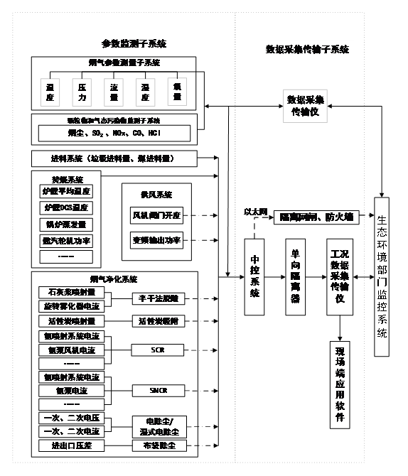 圖1生活垃圾焚燒發(fā)電廠煙氣排放過(guò)程(工況)監(jiān)控系統(tǒng)示意
