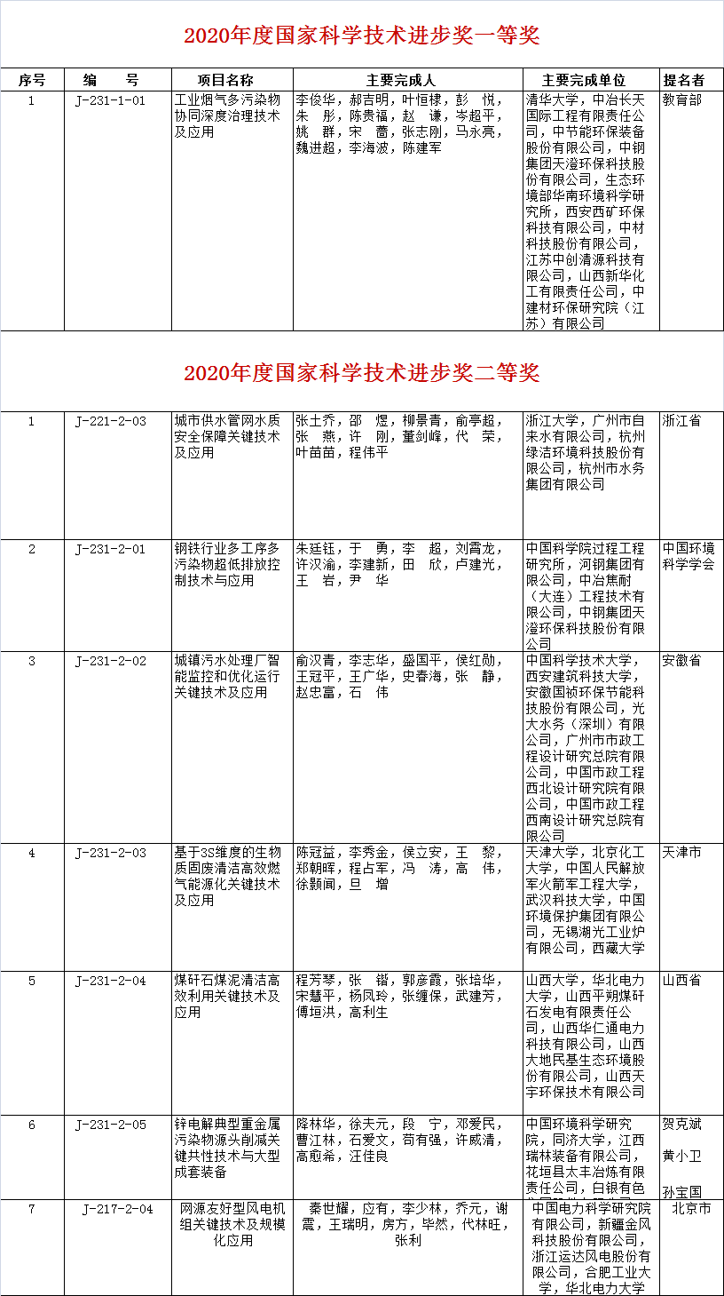 環(huán)境商會匯總整理了生態(tài)環(huán)境領(lǐng)域獲獎名單,共有11個項目榮獲2020年國家科技獎,其中,王愛杰、彭永臻、中國科學(xué)院生態(tài)環(huán)境研究中心程浩毅、梁斌、中持股份邵凱、信開水環(huán)境侯鋒等共同完成的“污水深度生物脫氮技術(shù)及應(yīng)用”項目榮獲國家技術(shù)發(fā)明獎二等獎,李俊華,郝吉明、中節(jié)能環(huán)保裝備等聯(lián)合完成的“工業(yè)煙氣多污染物協(xié)同深度治理技術(shù)及應(yīng)用”項目榮獲國家科技進(jìn)步獎一等獎;俞漢青、中節(jié)能國禎、光大水務(wù)等聯(lián)合完成的“城鎮(zhèn)污水處理廠智能監(jiān)控和優(yōu)化運(yùn)行關(guān)鍵技術(shù)及應(yīng)用”;新疆金風(fēng)科技等申報的“網(wǎng)源友好型風(fēng)電機(jī)組關(guān)鍵技術(shù)及規(guī)?;瘧?yīng)用”等項目榮獲國家科技進(jìn)步二等獎。