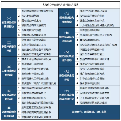 二、《2030年前碳達(dá)峰行動(dòng)方案》的十大行動(dòng)
