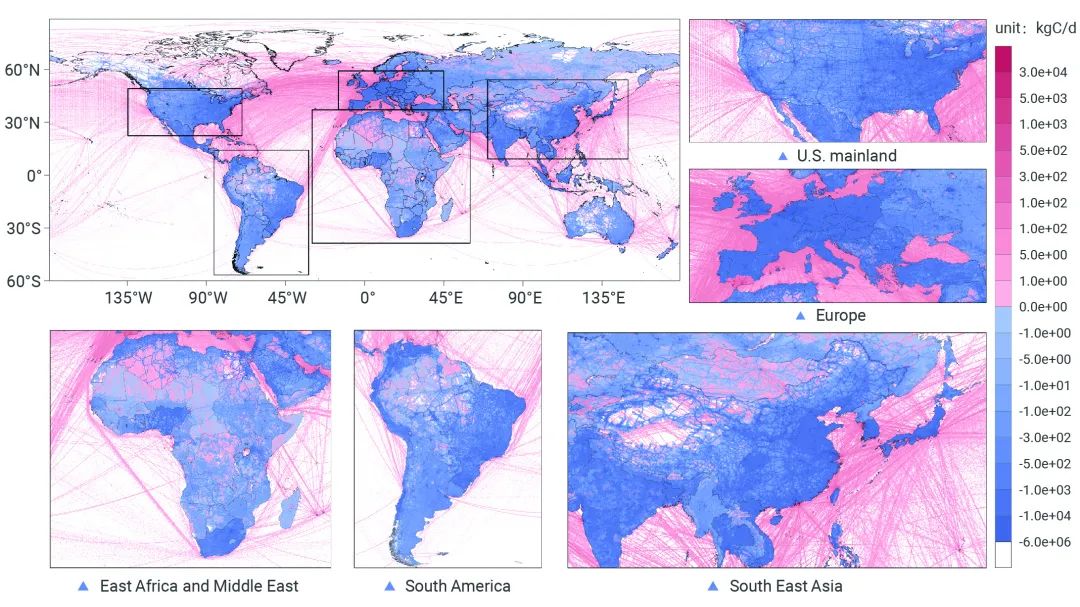 近實時全球碳地圖反映出人類活動變化導致的碳排放時空動態(tài)變化特征,包括氣候、季節(jié)、節(jié)假日甚至是新冠疫情對碳排放的實時動態(tài)變化。