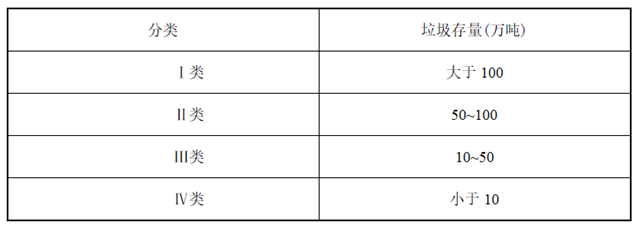 表1 存量生活垃圾治理工程建設(shè)規(guī)模分類(lèi)