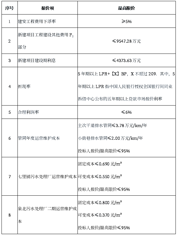 12.最高限價(jià):本項(xiàng)目最高限價(jià)如下表: