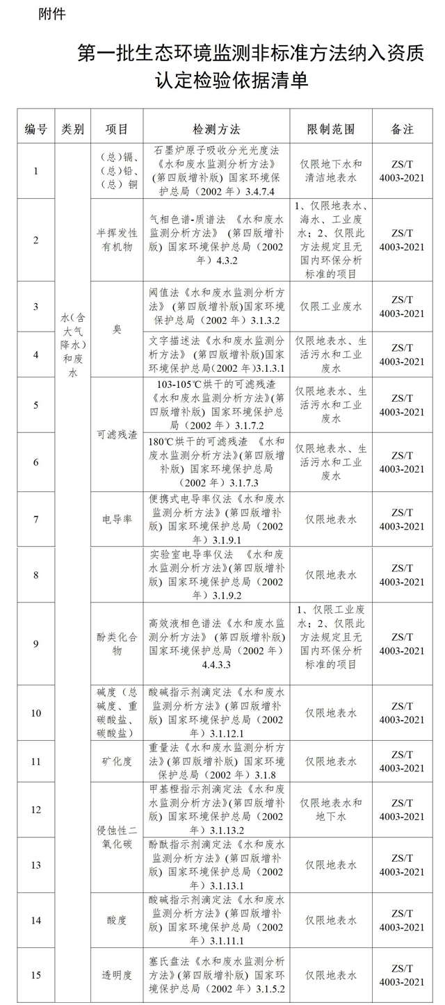 附件:第一批生態(tài)環(huán)境監(jiān)測(cè)非標(biāo)準(zhǔn)方法納入資質(zhì)認(rèn)定檢驗(yàn)依據(jù)清單.docx