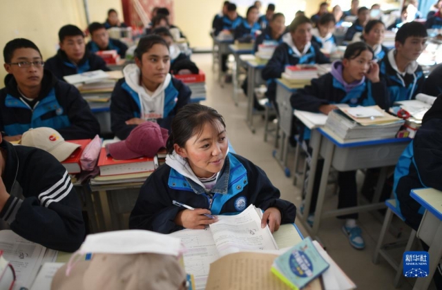 11月25日,青海省海南藏族自治州興海縣民族高級(jí)中學(xué)高一(1)班學(xué)生在教室內(nèi)聽講。新華社記者 駱曉飛 攝
