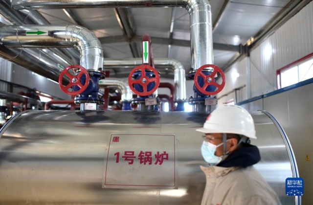 11月25日,大唐青海能源開發(fā)有限公司一名工人在青海省海南藏族自治州興海縣民族高級(jí)中學(xué)鍋爐房內(nèi)巡檢。新華社記者 駱曉飛 攝