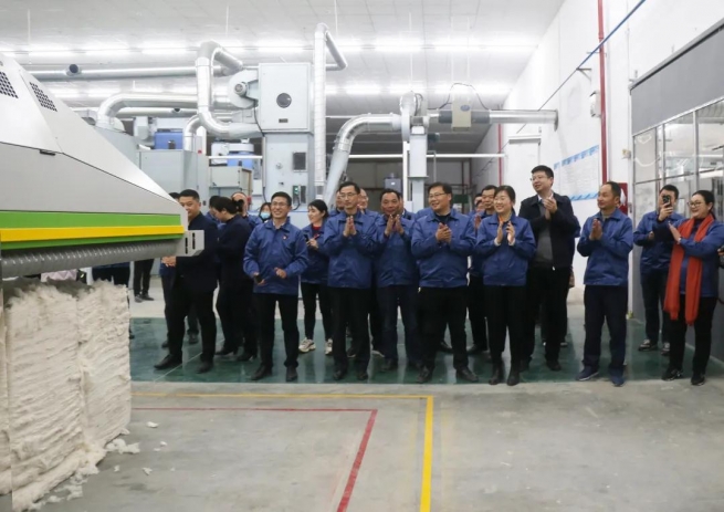 戴俊在致辭時(shí)對大力支持項(xiàng)目建設(shè)的盤灣鎮(zhèn)黨委、政府表示衷心的感謝,對廣大員工及工程建設(shè)者表示誠摯的慰問。他表示該項(xiàng)目的試生產(chǎn)是悅達(dá)紡織產(chǎn)業(yè)布局邁出的重要一步,今天實(shí)現(xiàn)試生產(chǎn)可喜可賀。他希望射陽分公司:一要高標(biāo)準(zhǔn)定位。爭做悅達(dá)紡織集團(tuán)和射陽地方工業(yè)經(jīng)濟(jì)的排頭兵,以 “高品質(zhì)、高效率、高素質(zhì)”的“三高”要求作為重要支撐;二要確保高效益。一開始就要算好成本和效益“兩本帳”,以新裝備、新工藝、新技術(shù)為支撐,接“好單”、接“難單”;三要全面統(tǒng)籌,盡早達(dá)產(chǎn)。做到統(tǒng)籌好生產(chǎn)和設(shè)備安裝,統(tǒng)籌好生產(chǎn)和安全,統(tǒng)籌好生產(chǎn)和精益管理,統(tǒng)籌好生產(chǎn)和二期規(guī)劃“四個(gè)統(tǒng)籌”。