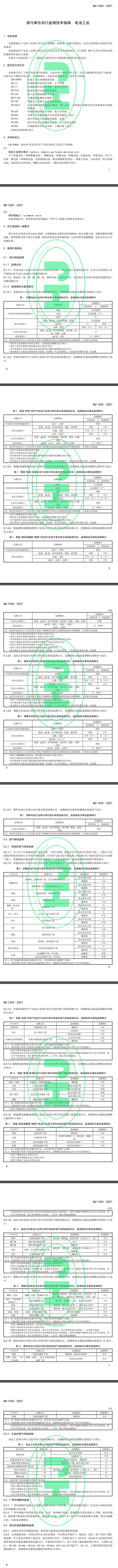 一、《排污單位自行監(jiān)測技術(shù)指南 電池工業(yè)》(HJ 1204-2021)