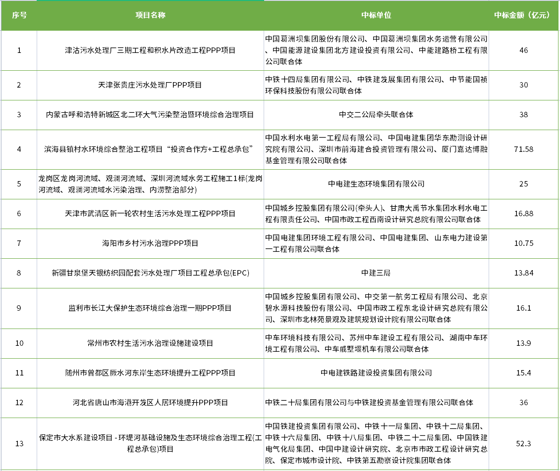 你一定沒注意!2021年以來“中”字頭已中標(biāo)13個10億+環(huán)保項(xiàng)目