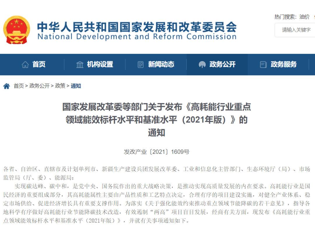 高耗能行業(yè)重點領域能效標桿水平和基準水平(2021年版)