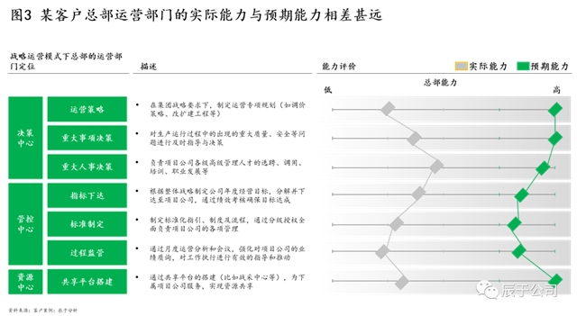 造成以上問題的根本原因是管理沒有跟著業(yè)務(wù)走,各級(jí)主體的角色定位沒有跟著公司發(fā)展而變化,該總部管的沒有管好,不需總部管的管太多。領(lǐng)先實(shí)踐表明,隨著一些企業(yè)的業(yè)務(wù)多元發(fā)展,總部定位也需要逐步從運(yùn)營(yíng)管控往戰(zhàn)略運(yùn)營(yíng)管控轉(zhuǎn)型,做好“決策、管控、資源共享”等中心定位,但有些企業(yè)的管理變革顯然沒有緊隨其后(見圖3)。