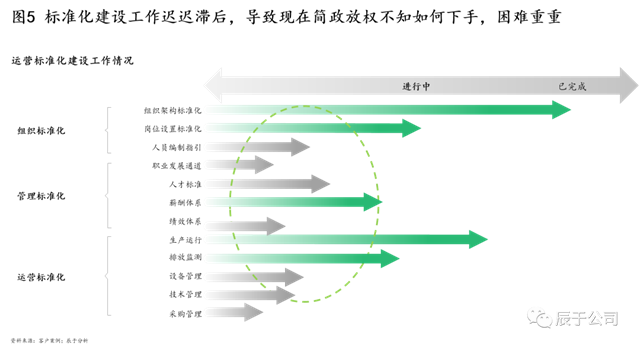 更要命的是,總部的能力提升與體系建設(shè)工作遲遲不能開展,即使開展也因?yàn)?ldquo;事務(wù)纏身”幾無進(jìn)展或質(zhì)量不高,當(dāng)下“時(shí)髦的”數(shù)字化、智慧化運(yùn)營(yíng)更無從談起,或只能做做“面子工程”(見圖5)。