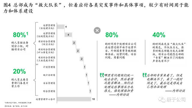 由于授權(quán)不充分或者下屬項(xiàng)目公司能力參差不齊,一些總部的運(yùn)營(yíng)管理部門淪為“救火隊(duì)長(zhǎng)”,幾乎一半的時(shí)間忙著應(yīng)付各類突發(fā)事件和具體事項(xiàng),不僅壓力大,而且臨陣磨槍有時(shí)未必見效(見圖4)。