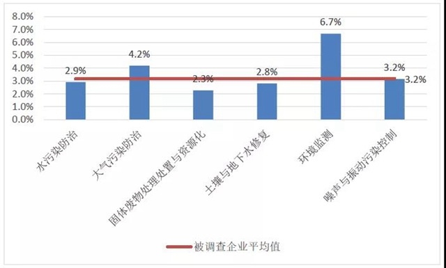 2020年環(huán)保企業(yè)平均研發(fā)支出同比增長16.8%,研發(fā)支出占營業(yè)收入的比重為3.2%,高于2020年全國規(guī)模以上工業(yè)企業(yè)研發(fā)支出占營業(yè)收入的比重(1.41%)。其中,環(huán)境監(jiān)測領域研發(fā)支出占營業(yè)收入的比重最高,達6.7%。研發(fā)人員數(shù)量占從業(yè)人數(shù)的比重為17.1%,同比增長0.6%。企業(yè)平均專利授權數(shù)從2019年的4.5件增長到4.8件。