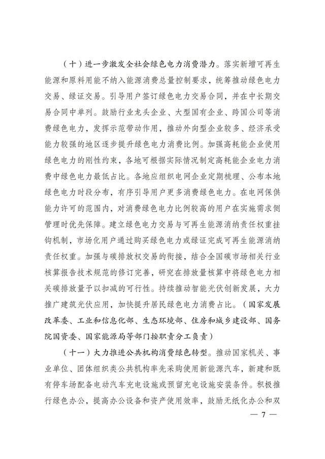 為深入貫徹落實《中共中央、國務院關于完整準確全面貫徹新發(fā)展理念做好碳達峰碳中和工作的意見》和《2030年前碳達峰行動方案》有關要求,根據(jù)碳達峰碳中和工作領導小組部署安排,國家發(fā)展改革委、工業(yè)和信息化部、住房和城鄉(xiāng)建設部、商務部、市場監(jiān)管總局、國管局、中直管理局會同有關部門研究制定了《促進綠色消費實施方案》?,F(xiàn)印發(fā)給你們,請結合實際,認真抓好貫徹落實。