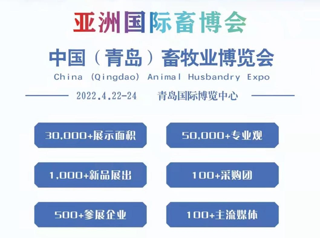 2022中國(青島)畜牧業(yè)博覽會將于2022年4月22日-24日在青島國際博覽中心舉辦。
