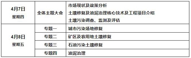土壤修復(fù)及油泥治理全體主題大會、土壤污染防治管理及修復(fù)行業(yè)現(xiàn)狀及發(fā)展趨勢、全國工業(yè)企業(yè)用地土壤環(huán)境質(zhì)量詳查狀況分析、石油污染場地及油泥市場普查狀況及治理進(jìn)展、污染場地現(xiàn)場調(diào)查采樣及與評估技術(shù)、場地環(huán)境調(diào)查中的不確定性和風(fēng)險、電化學(xué)原位修復(fù)重金屬污染土壤的技術(shù)及應(yīng)用、中低濃度典型有機(jī)污染場地生物修復(fù)技術(shù)、重金屬-有機(jī)物復(fù)合污染場地的綜合治理技術(shù)、油田污染土壤修復(fù)技術(shù)工藝選擇及項目案例分析、石油烴污染場地微生物修復(fù)技術(shù)及案例分析、熱解技術(shù)在高濃度有機(jī)污染場地及油泥治理中的應(yīng)用、油田存量老化油泥綜合處置技術(shù)、油泥熱解尾渣的資源化利用、土壤環(huán)境大數(shù)據(jù)分析和信息智能管理系統(tǒng)、污染地塊治理修復(fù)工程效果監(jiān)測及評估