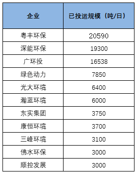 49350噸/日項目在建、待建,廣環(huán)投、深能環(huán)保領跑
