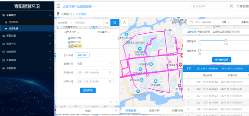 車輛內(nèi)部安裝有GPS定位系統(tǒng)和智能監(jiān)控?cái)z像頭,這些智能設(shè)備獲取的數(shù)據(jù)可以實(shí)時(shí)傳輸?shù)街腔郾O(jiān)管后臺,每種垃圾收運(yùn)車只需要按照規(guī)定路線依次收運(yùn)即可,一旦車輛路線偏移、停留時(shí)間過長等情況出現(xiàn),后臺即可實(shí)時(shí)監(jiān)測并靈活調(diào)度。