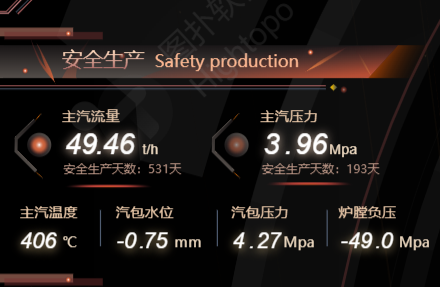 2D 面板實(shí)時更新余熱鍋爐蒸汽壓力,蒸汽溫度、給水溫度、鍋爐排污率、蒸汽蒸發(fā)量、本體阻力。