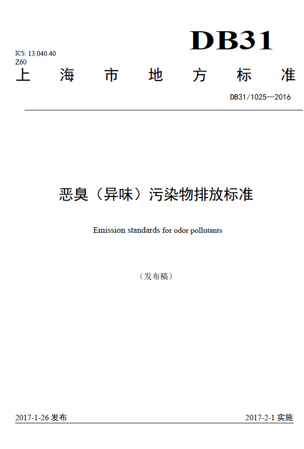 上海市地方污染物排放標準《惡臭(異味)污染物排放標準》(DB 31/1025-2016)