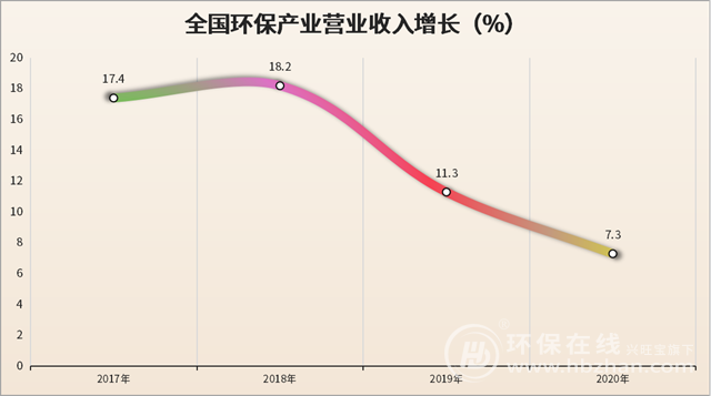 并且不可否認(rèn)的是,隨著“十三五”規(guī)劃目標(biāo)的圓滿完成,環(huán)保產(chǎn)業(yè)規(guī)模的增速確有波動(dòng)。來自中國環(huán)保產(chǎn)業(yè)協(xié)會(huì)的《中國環(huán)保產(chǎn)業(yè)發(fā)展?fàn)顩r報(bào)告(2021)》顯示,2020年全國環(huán)保產(chǎn)業(yè)營業(yè)收入增長(zhǎng)約為7.3%??梢詫?duì)比一下,增速放緩的信號(hào)還是比較明顯的。