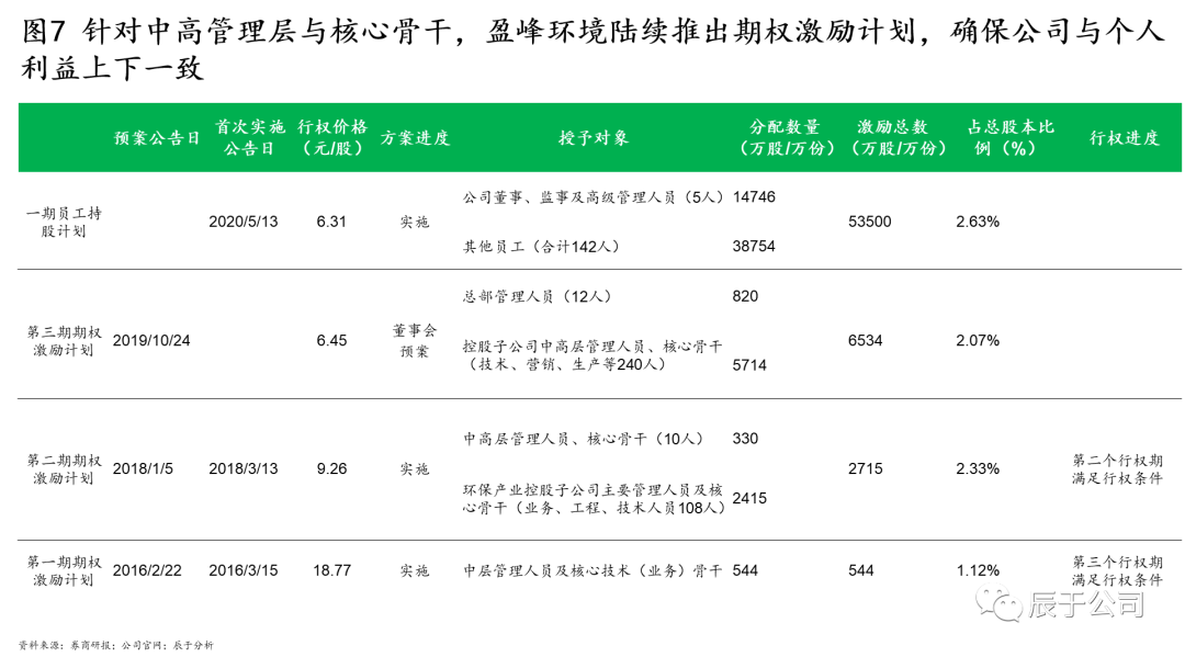 盈峰環(huán)境的掌舵人何劍鋒曾在多個(gè)場合下強(qiáng)調(diào)其發(fā)展的三個(gè)核心:訂單導(dǎo)向、技術(shù)創(chuàng)新、人才激勵(lì)。自2016年開始,盈峰環(huán)境多次推出人才激勵(lì)計(jì)劃,把握獎(jiǎng)勵(lì)過去、激勵(lì)未來的核心觀念,不斷提高激勵(lì)總額度、擴(kuò)大激勵(lì)對(duì)象與范圍、優(yōu)化業(yè)績考核要求,既完善了員工薪酬結(jié)構(gòu),提升了員工積極性與穩(wěn)定性,也實(shí)現(xiàn)了治理結(jié)構(gòu)的優(yōu)化,保障管理層與公司利益的長期一致性(見圖7)。