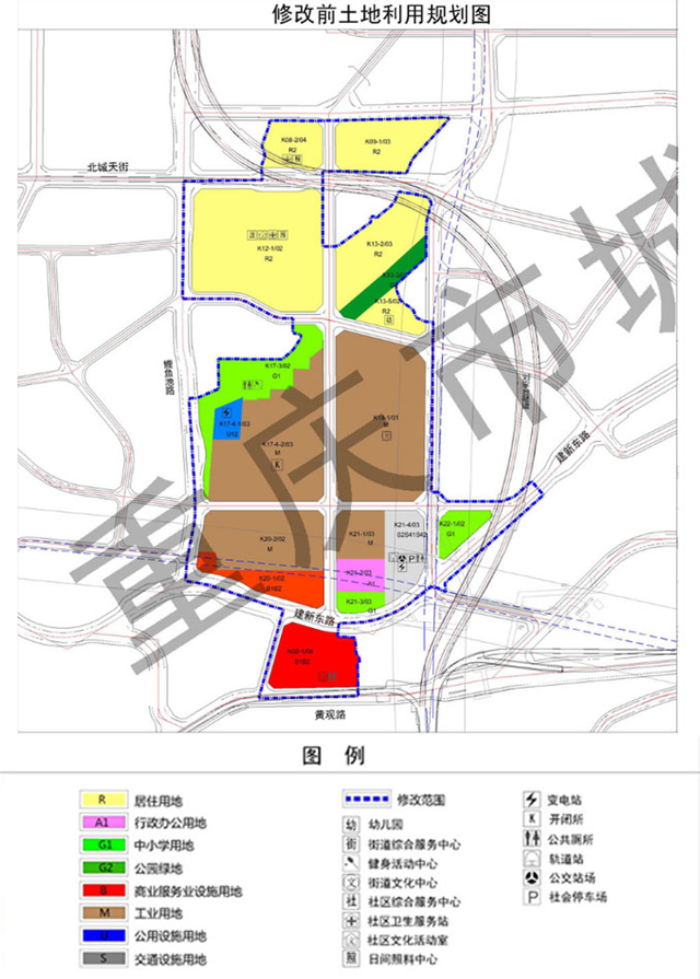以鋼筋為例,我們可以通過長(zhǎng)安三工廠片區(qū)項(xiàng)目估算一下,光是這一項(xiàng)拆出工程就能收入多少。根據(jù)重慶市規(guī)劃和自然資源局發(fā)布的相關(guān)城鄉(xiāng)規(guī)劃,可以看到長(zhǎng)安三工廠片區(qū)修改前后的示意圖。如下圖所示,在修改前,該片區(qū)有約一半的區(qū)域?yàn)楣I(yè)用地(褐色區(qū)域),另一半約為居住用地(黃色區(qū)域)。