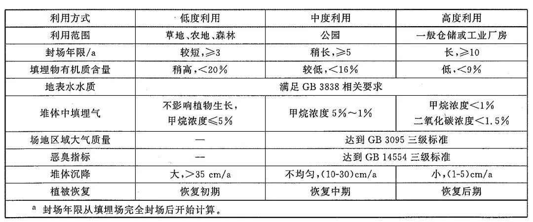 第二,生態(tài)環(huán)境部2022年2月發(fā)布了《生活垃圾填埋場污染控制標(biāo)準(zhǔn)(征求意見稿)》,提出:封場后的填埋場可以進(jìn)行再利用,但再利用前應(yīng)進(jìn)行環(huán)境影響評價,并應(yīng)符合GB/T 25179-2010《生活垃圾填埋場穩(wěn)定化場地利用技術(shù)要求》的規(guī)定,以開挖方式進(jìn)行再利用的填埋場,還應(yīng)滿足GB/T 25179-2010中高度利用的規(guī)定。但是,GB/T 25179-2010針對“高度利用”的約束條件僅有9個項目[17][18]。