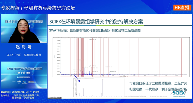 趙劉清介紹到,當(dāng)前,SCIEX在組學(xué)研究中的解決方案主要有四類:IDA數(shù)據(jù)采集、SWATH非靶采集方案、擬靶向代謝組學(xué)的研究及高通量靶向組學(xué)。包括動態(tài)背景扣除技術(shù)DBS、數(shù)據(jù)非依賴性掃描SWATH技術(shù)等,這些技術(shù)背后都有哪些環(huán)境有機(jī)污染物鑒定分析優(yōu)勢?直播間里都講到啦~