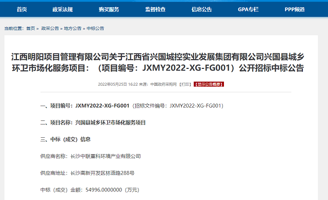 原標(biāo)題:江西明陽項(xiàng)目管理有限公司關(guān)于江西省興國(guó)城控實(shí)業(yè)發(fā)展集團(tuán)有限公司興國(guó)縣城鄉(xiāng)環(huán)衛(wèi)市場(chǎng)化服務(wù)項(xiàng)目:(項(xiàng)目編號(hào):JXMY2022-XG-FG001)公開招標(biāo)中標(biāo)公告