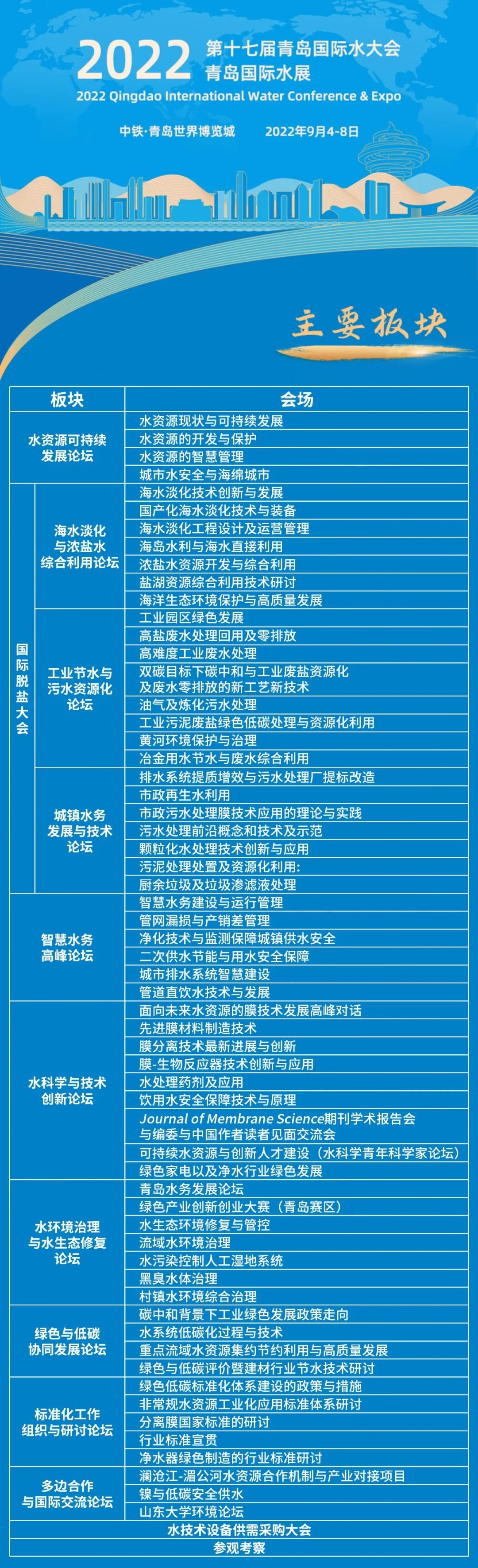 由衷感謝廣大代表、展商、觀眾及合作伙伴長期以來對大會的鼎力支持和信任,對主承辦方工作的高度理解和積極配合。2022青島國際水大會暨青島國際水展必將秉承其高水準和高品質(zhì),9月與您再聚美麗青島!祝愿您和家人健康平安!