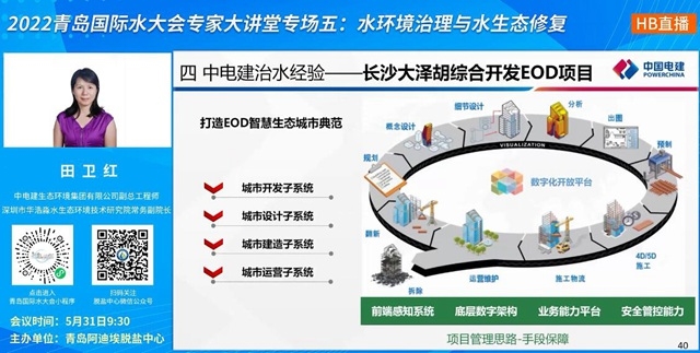 從理論轉(zhuǎn)入實(shí)踐,田衛(wèi)紅還分享了中電建治水經(jīng)驗(yàn),包括茅洲河綜合整治EPC項(xiàng)目,以及現(xiàn)在漸入白熱化的EOD項(xiàng)目(長沙大澤湖)。像茅洲河采用織網(wǎng)成片、正本清源、理水梳岸、尋水溯源“四級”推進(jìn)技術(shù)路線,大澤湖構(gòu)建“一湖一帶一路網(wǎng)”,均是典范項(xiàng)目。