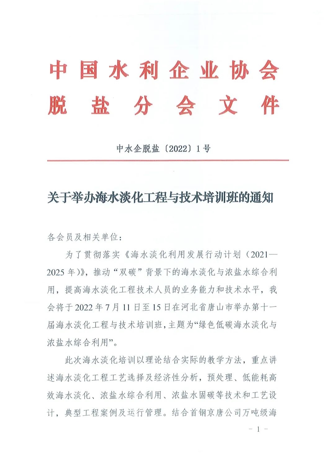 為了貫徹落實《海水淡化利用發(fā)展行動計劃(2021—2025年)》,推動“雙碳”背景下的海水淡化與濃鹽水綜合利用,由中國水利企業(yè)協(xié)會脫鹽分會主辦的第十一屆海水淡化工程與技術(shù)培訓(xùn)班計劃于2022年7月11日至15日在河北省唐山市曹妃甸區(qū)舉辦,本屆海水淡化培訓(xùn)班的主題是“綠色低碳”海水淡化與濃鹽水綜合利用,課程內(nèi)容豐富充實,教學(xué)質(zhì)量專業(yè)。此次培訓(xùn)以理論結(jié)合實踐的教學(xué)方法,結(jié)合首鋼京唐公司“燃-熱-電-水-鹽”五效一體高效循環(huán)利用技術(shù)現(xiàn)場進行實踐教學(xué)。