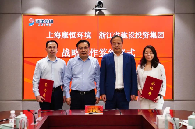 6月8日,康恒環(huán)境與浙江省建設(shè)投資集團在杭州簽訂戰(zhàn)略合作框架協(xié)議。浙江省建設(shè)投資集團黨委書記、董事長沈德法,康恒環(huán)境董事長兼首席執(zhí)行官龍吉生出席簽約儀式。