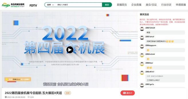 誠然,隨著近年來互聯(lián)網(wǎng)迅猛發(fā)展,新一代信息技術(shù)、新的信息交流方式等正從方方面面影響和改變著人們的生活,線上展會的出現(xiàn)已然成為企業(yè)打通線上線下、拓展商機的重要渠道之一。食品機械設備網(wǎng)作為國內(nèi)早期進入食品機械行業(yè)門戶網(wǎng)站,立足于社會發(fā)展,立足于食品機械行業(yè)發(fā)展,立足于行業(yè)平臺與視頻直播技術(shù)等優(yōu)勢,匠心打造食品機械設備行業(yè)盛會——食機展,以直播內(nèi)容、云訪談等全天候切換輪播的形式,以一對一交流、遞名片、在線留言、觀看企業(yè)商鋪等貼心功能,促進采供雙方洽談溝通,是我們與時代同進步、與行業(yè)共成長的重要舉措。