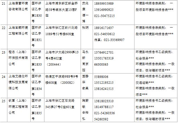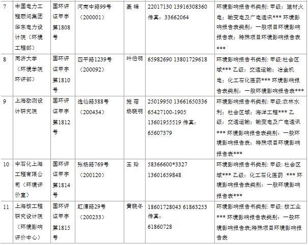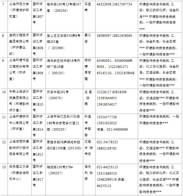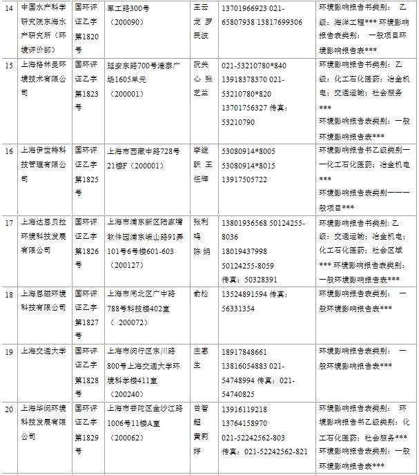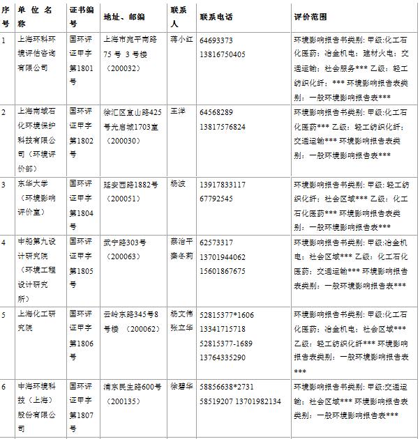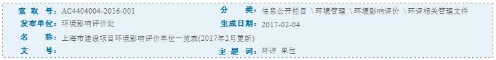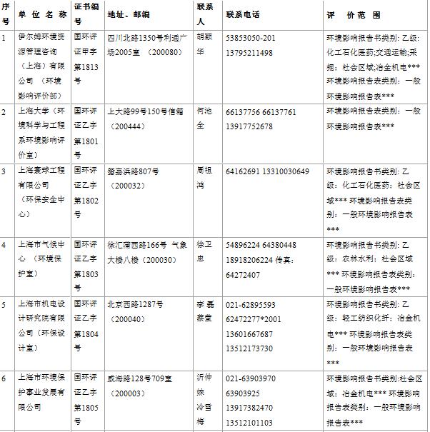 上海市建設(shè)項目環(huán)境影響評價單位一覽表(2017年2月更新)