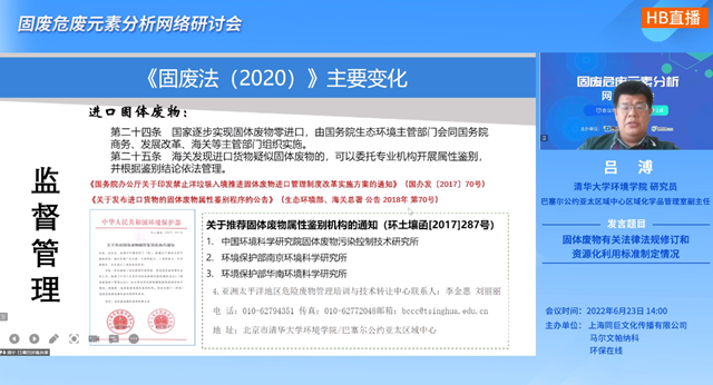 直播最后,呂溥為我們帶來了《固體廢物有關(guān)法律法規(guī)修訂和資源化利用標(biāo)準(zhǔn)制定情況》的演講。