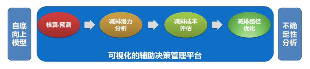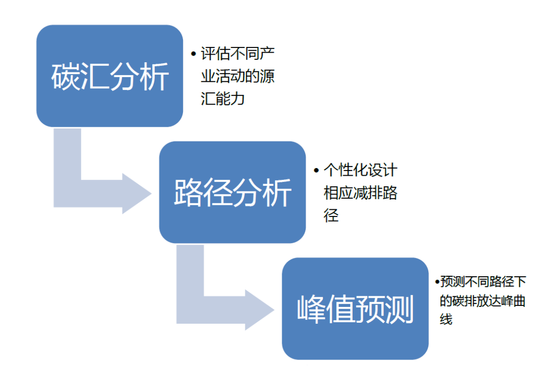 以基于城市尺度的可計算一般均衡模型(CGE)為核心,通過LEAP\TIMES模型自底向上進行核算、預測以及減排潛力分析,通過MARKAL模型進行減排路徑優(yōu)化。耦合社會、經(jīng)濟、環(huán)境、健康等模塊,構建區(qū)域碳排放情景仿真模型,能夠反應多區(qū)域經(jīng)濟發(fā)展與碳排放的復雜響應關系。