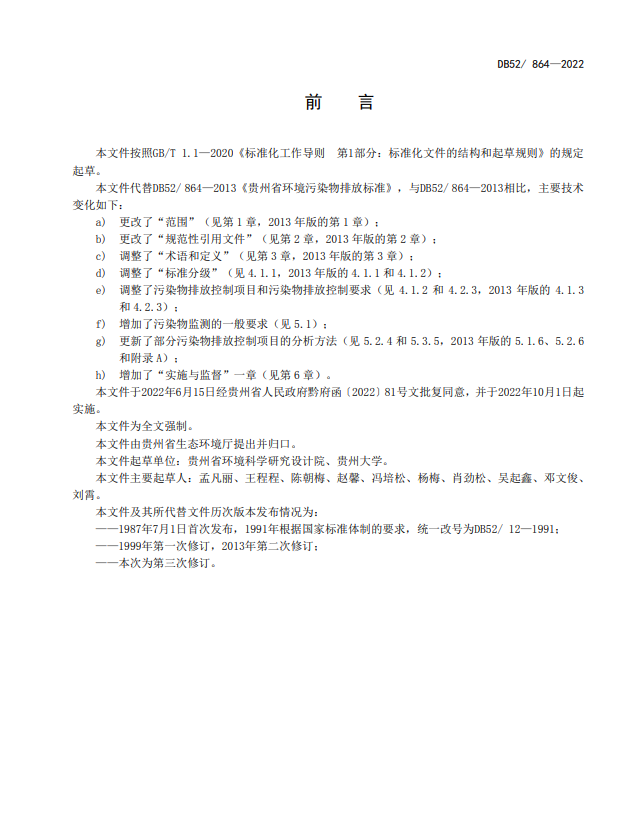 日前,經(jīng)貴州省人民政府同意,貴州省市場監(jiān)管局、貴州省生態(tài)環(huán)境廳聯(lián)合批準發(fā)布《貴州省環(huán)境污染物排放標準》貴州省地方標準,標準涉及大氣污染物、水污染物等。