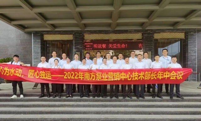 為加強(qiáng)事業(yè)部技術(shù)支持人員與銷售公司技術(shù)人員的溝通與聯(lián)系,提升銷售公司整體技術(shù)能力,南方泵業(yè)于2022年7月7日至9日開(kāi)展“心為水動(dòng),匠心獨(dú)運(yùn)”為主題的技術(shù)部長(zhǎng)級(jí)年中會(huì)議。本次會(huì)議由大客戶綜合管理部部長(zhǎng)陳劍鋒組織召開(kāi),各級(jí)銷售公司技術(shù)部長(zhǎng)參會(huì),并邀請(qǐng)南方泵業(yè)國(guó)內(nèi)營(yíng)銷中心總監(jiān)馬燕紅女士蒞臨會(huì)議指導(dǎo)。