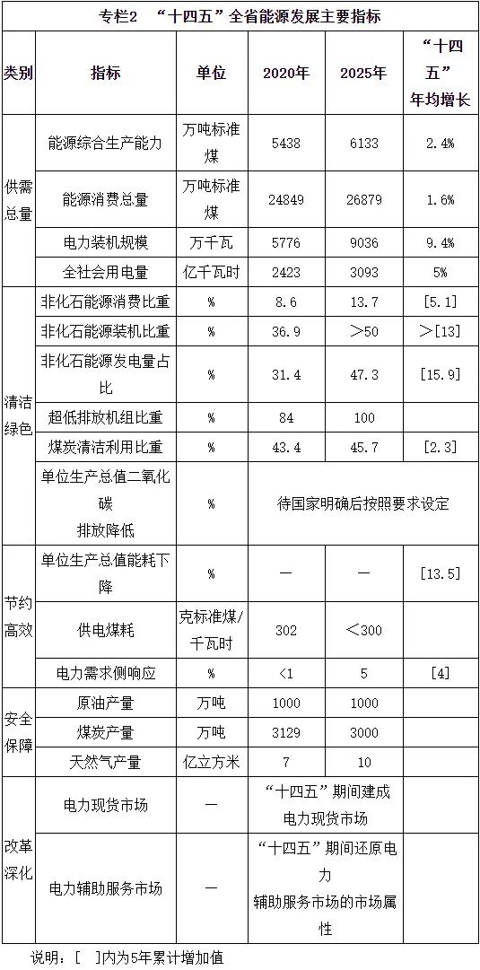 按照構(gòu)建清潔低碳、安全高效的現(xiàn)代能源體系和著力建設(shè)清潔能源強省的目標要求,到“十四五”末全省能源發(fā)展主要目標是: